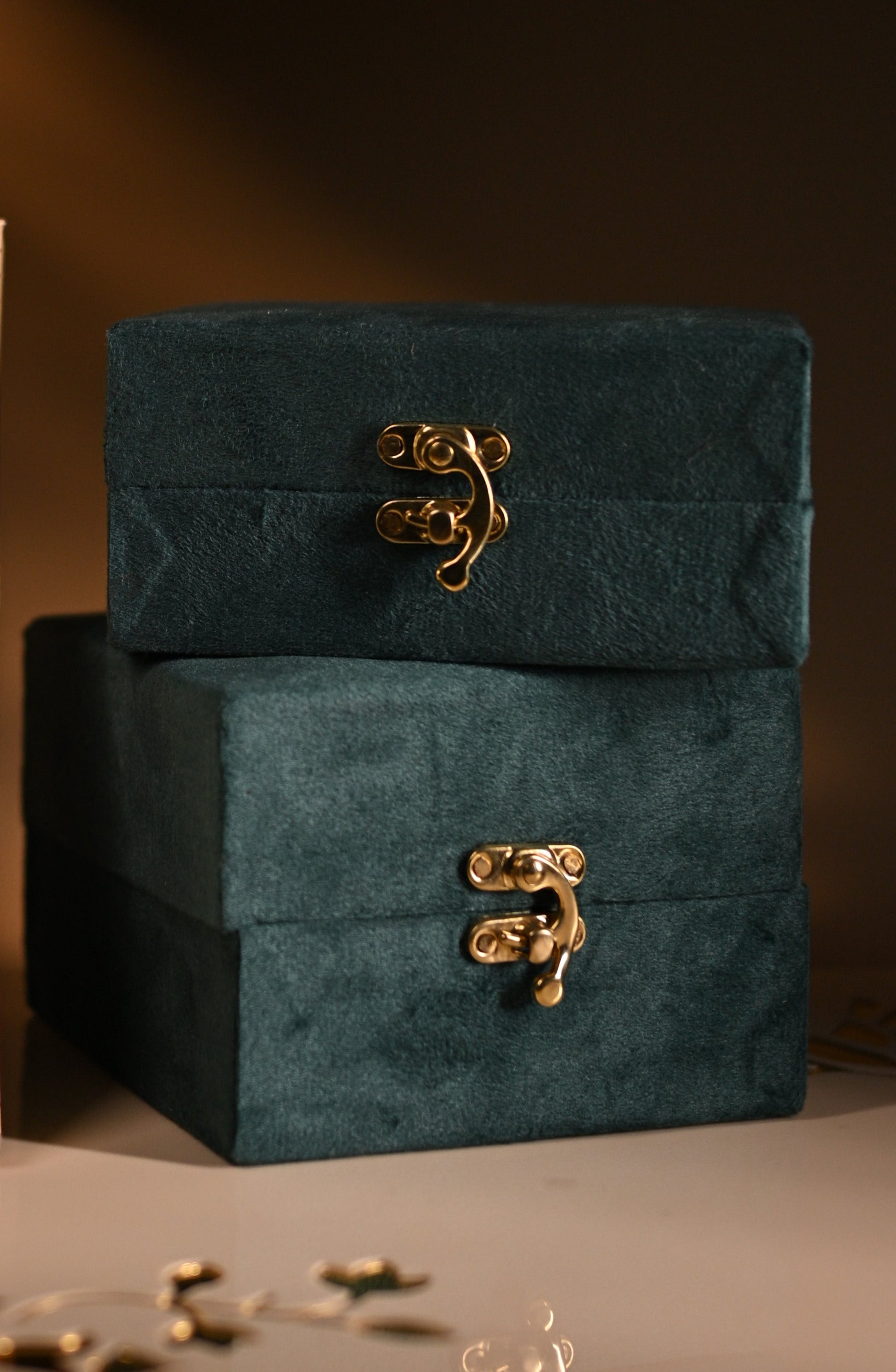 On the right side, we placed a velvet gift box, adding a soft and luxurious feel to the setting.