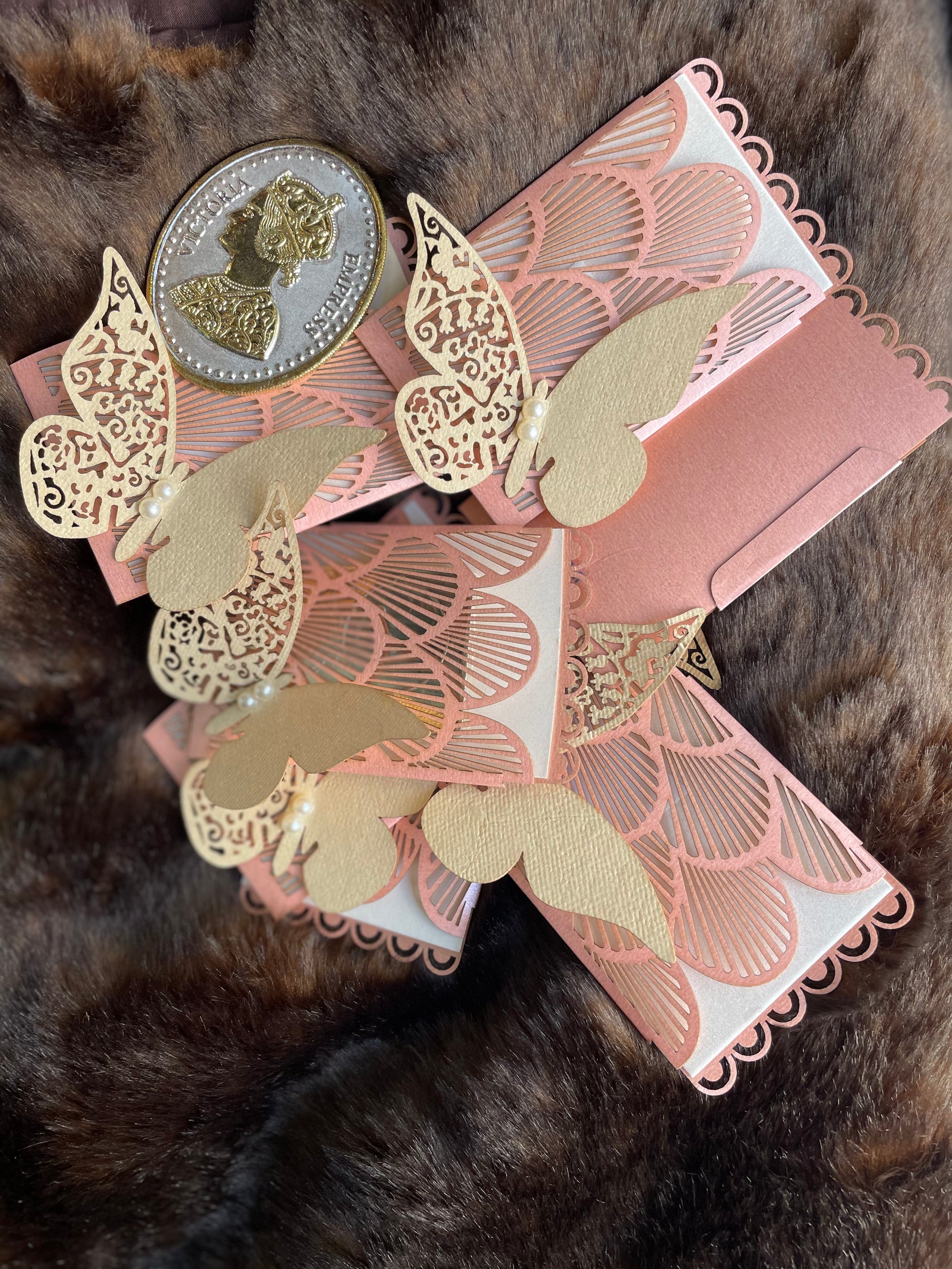 Our 3D Butterfly Coin pocket is made of paper for gifting silver or gold coins on any event. There is a double-tape-card to hold the coin in so that it doesn't fall out. It is available in vibrant colors and designs.