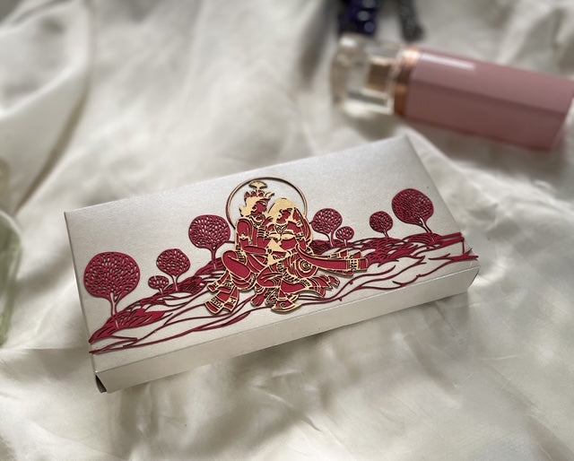 Golden & red Radha Krishana cutout on the silverish grey is a beautifully crafted Cash box which is perfect for all your occasion like wedding and homecoming etc