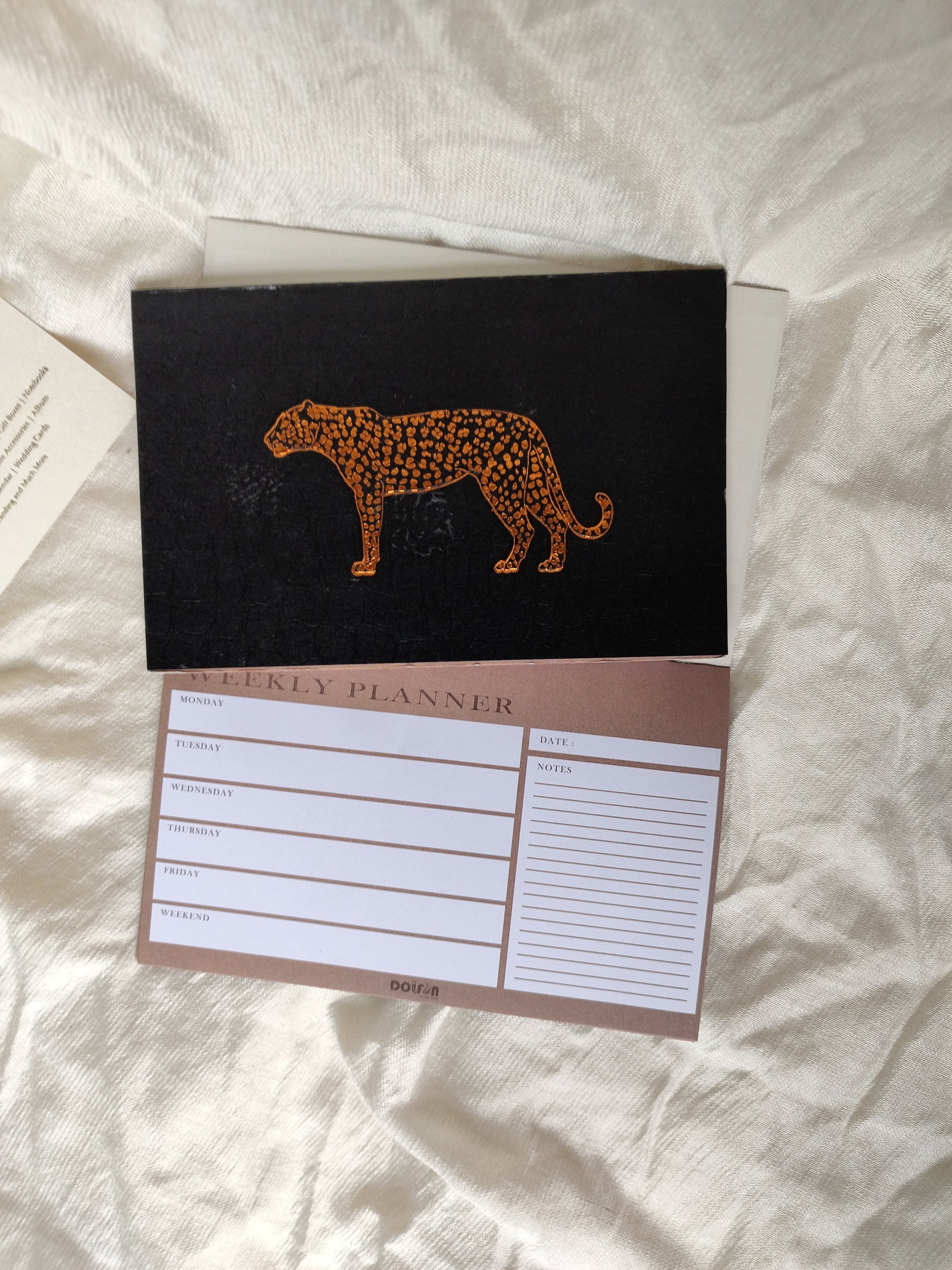 Leopard Emboss Daily Planner Notebook. This stunning planner, featuring a bold and sophisticated leopard emboss on the cover