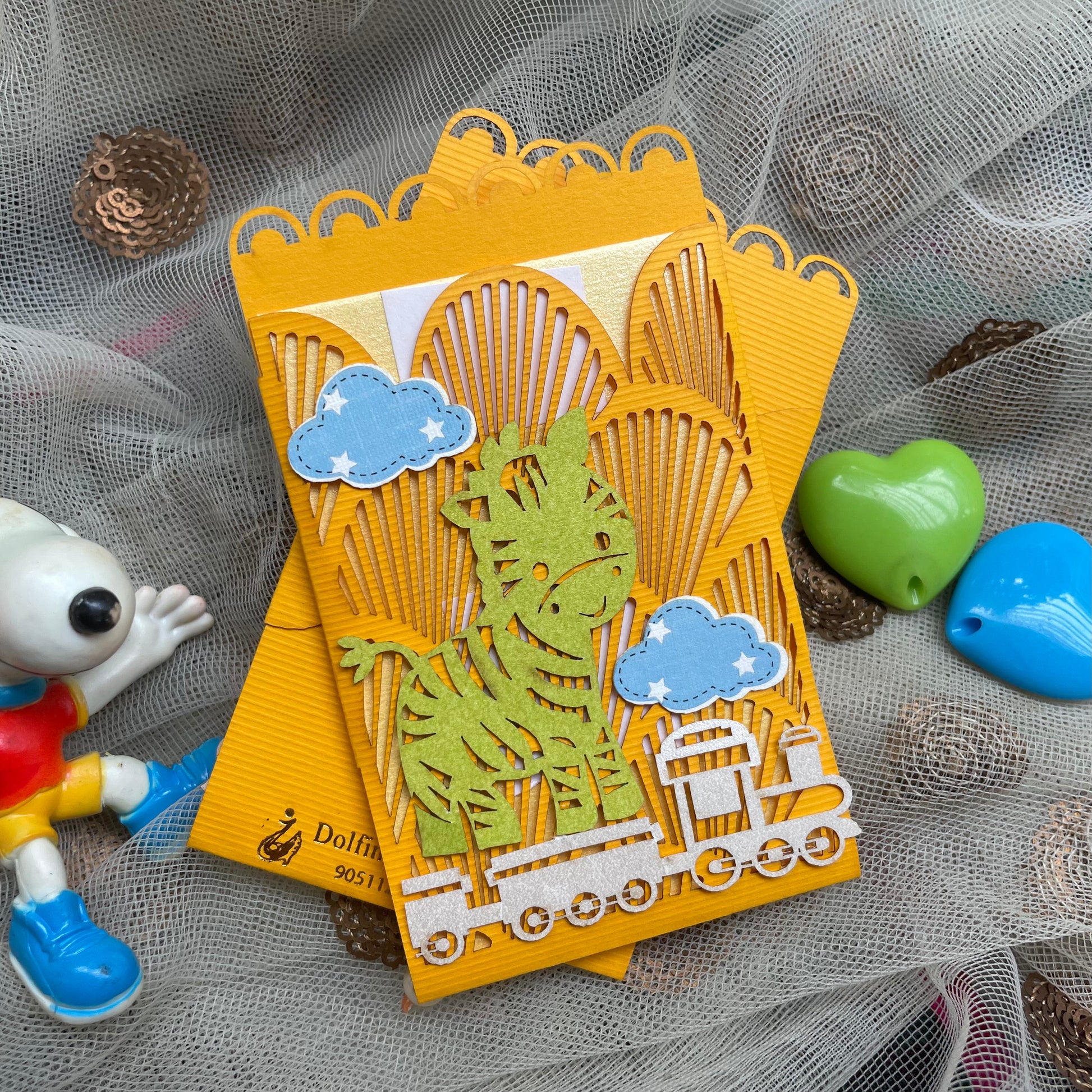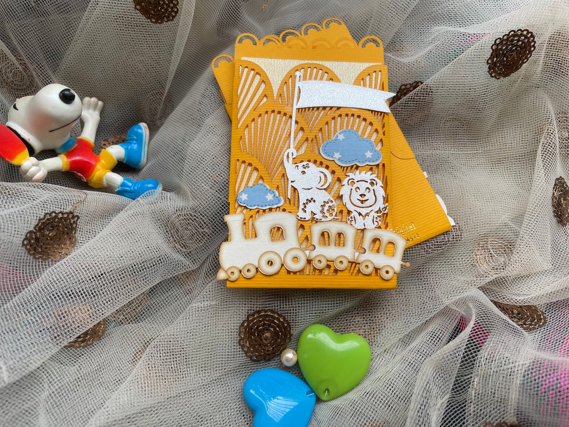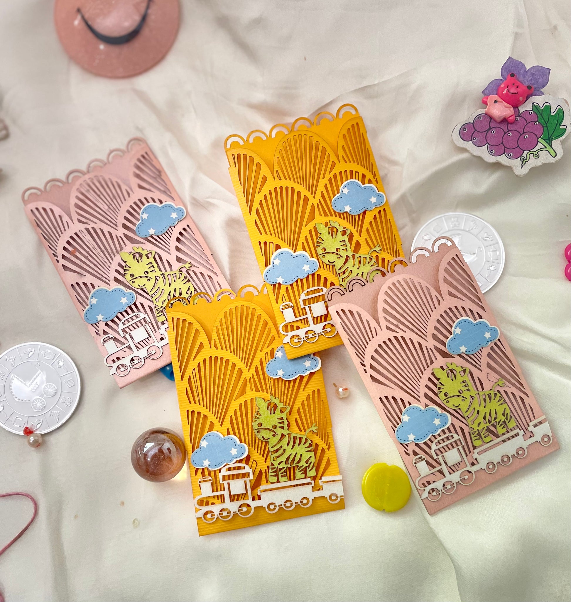 Our Train n Jungle Coin pocket is made of paper for gifting silver or gold coins on any event. There is a double-tape-card to hold the coin in so that it doesn't fall out. It is available in vibrant colours and designs.