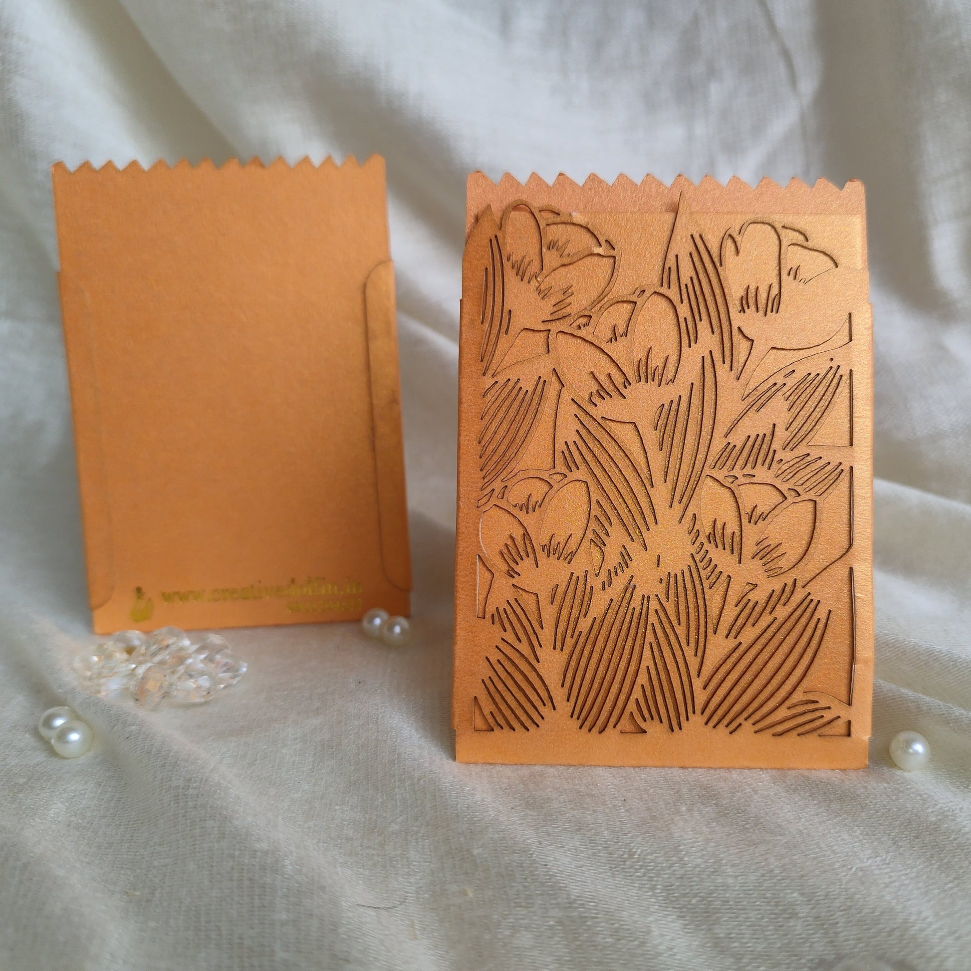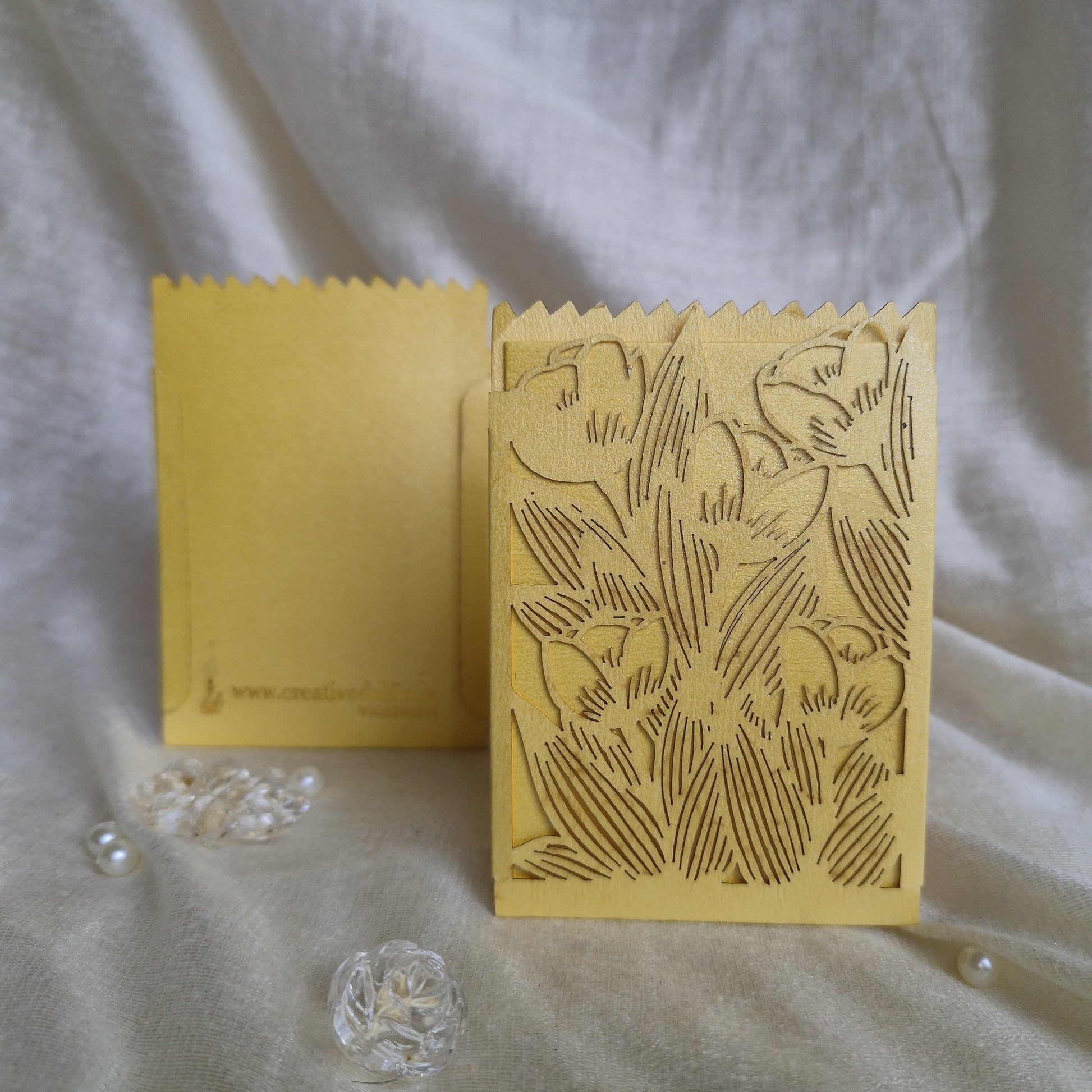 Our Tulip Coin pocket is made of paper for gifting silver or gold coins on any event. There is a double-tape-card to hold the coin in so that it doesn't fall out. It is available in vibrant colours and designs.